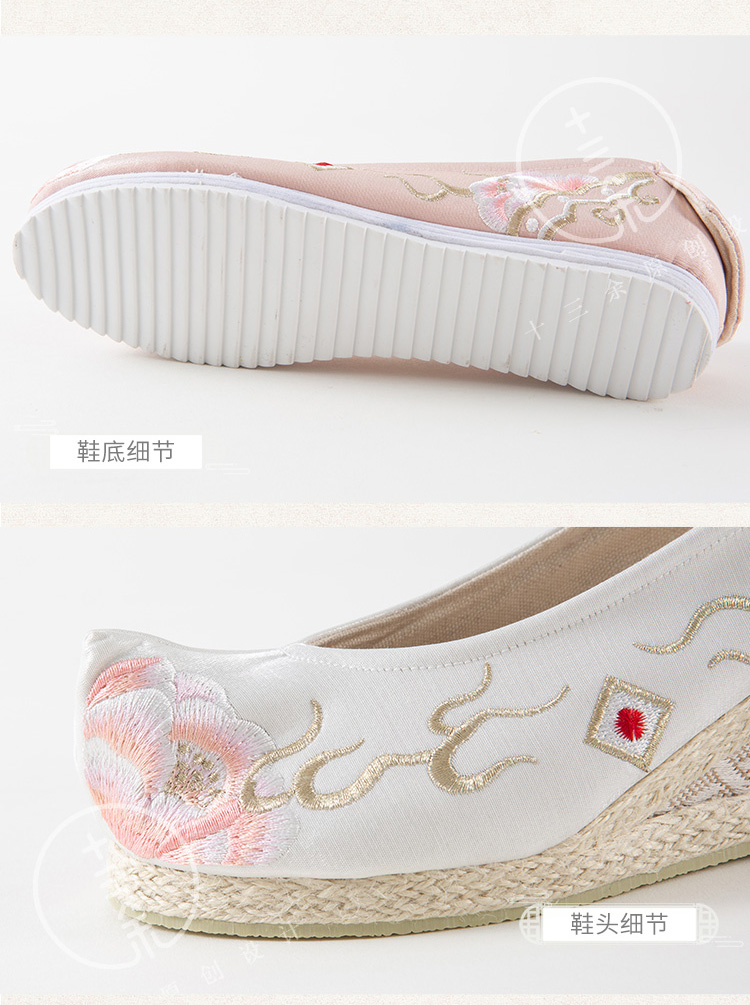 "Peony 芍药" Embroidered Heeled Bow Shoes Sale price$39.00